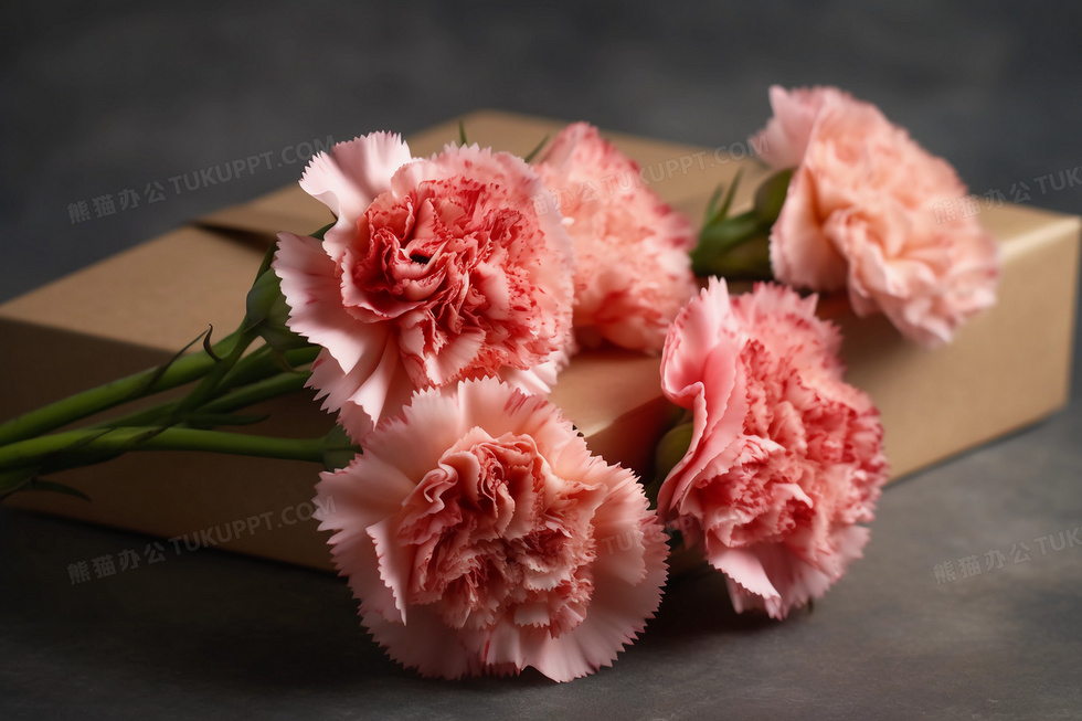 本作品内容为一束康乃馨摆放在包装盒上插画, 格式为 jpg, 大小3 MB, 图片尺寸为2688 x 1792, 源文件无水印, 欢迎使用熊猫办公。 如认为平台内容涉嫌侵权,可通过邮件:tousu@tukuppt.com提出书面通知,我们将及时处理。