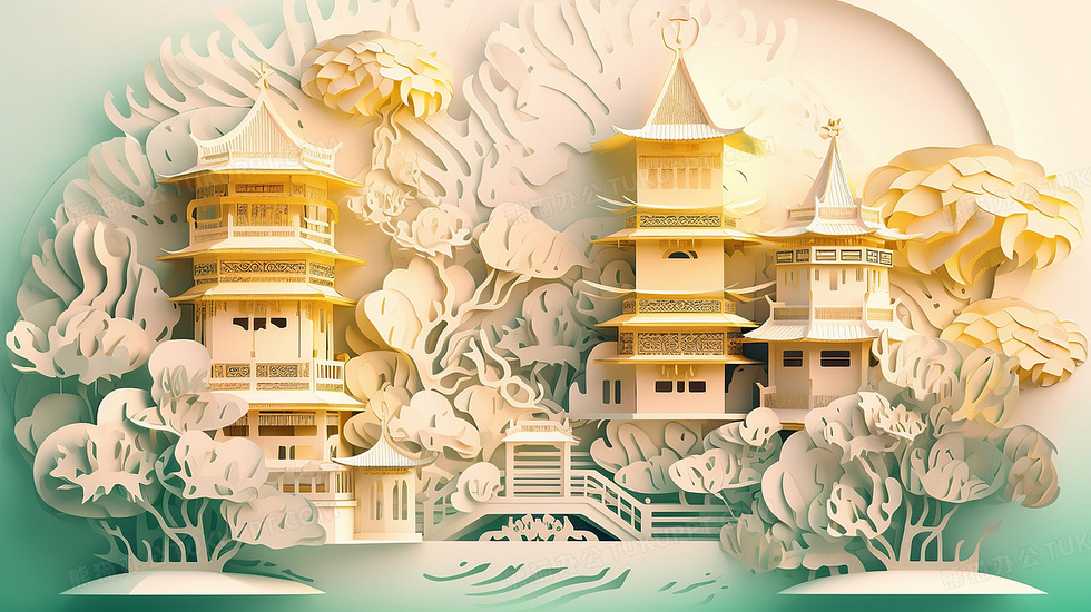 本作品内容为奢华金色中国风亭台楼阁园林建筑创意剪纸插画, 格式为 jpg, 大小17 MB, 图片尺寸为8736 x 4896, 源文件无水印, 欢迎使用熊猫办公。 如认为平台内容涉嫌侵权,可通过邮件:tousu@tukuppt.com提出书面通知,我们将及时处理。