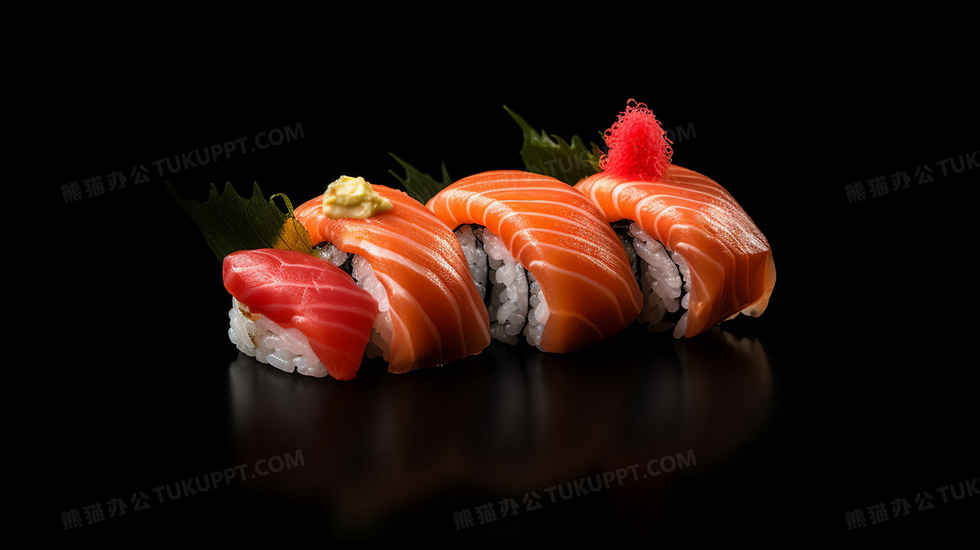 本作品内容为日本料理美味诱人的三文鱼寿司, 格式为 jpg, 大小1 MB, 图片尺寸为2912 x 1632, 源文件无水印, 欢迎使用熊猫办公。 如认为平台内容涉嫌侵权,可通过邮件:tousu@tukuppt.com提出书面通知,我们将及时处理。