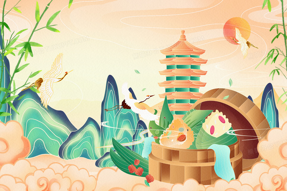 本作品内容为山水国潮端午节粽子节日插画, 格式为 psd, 大小64 MB, 请使用软件PhotoShop(CS6)打开, 源文件无水印, 欢迎使用熊猫办公。 如认为平台内容涉嫌侵权,可通过邮件:tousu@tukuppt.com提出书面通知,我们将及时处理。