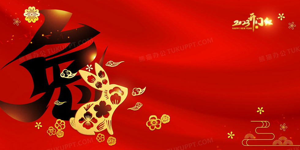 本作品内容为红色创意简约兔年艺术字新年喜庆背景, 格式为 psd, 大小42 MB, 图片尺寸为4724 x 2362, 作品中背景图片无需修改, 源文件无水印,可以直接使用, 欢迎使用熊猫办公。 如认为平台内容涉嫌侵权,可通过邮件:tousu@tukuppt.com提出书面通知,我们将及时处理。