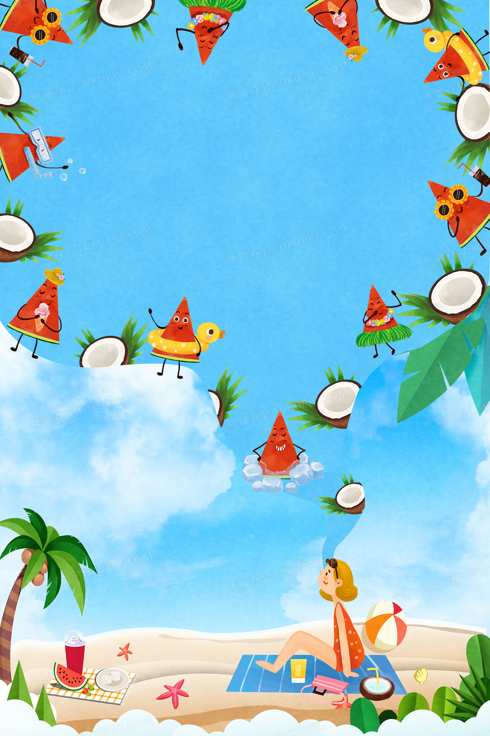 本作品内容为夏日创意海滩度假背景, 格式为 psd, 大小135 MB, 图片尺寸为3543 x 5315, 作品中背景图片无需修改, 源文件无水印,可以直接使用, 欢迎使用熊猫办公。 如认为平台内容涉嫌侵权,可通过邮件:tousu@tukuppt.com提出书面通知,我们将及时处理。