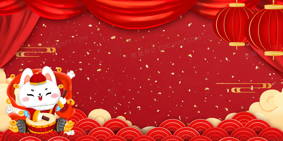 本作品内容为喜庆2023兔年打鼓背景图, 格式为 psd, 大小94 MB, 图片尺寸为4724 x 2362, 作品中背景图片无需修改, 源文件无水印,可以直接使用, 欢迎使用熊猫办公。 如认为平台内容涉嫌侵权,可通过邮件:tousu@tukuppt.com提出书面通知,我们将及时处理。