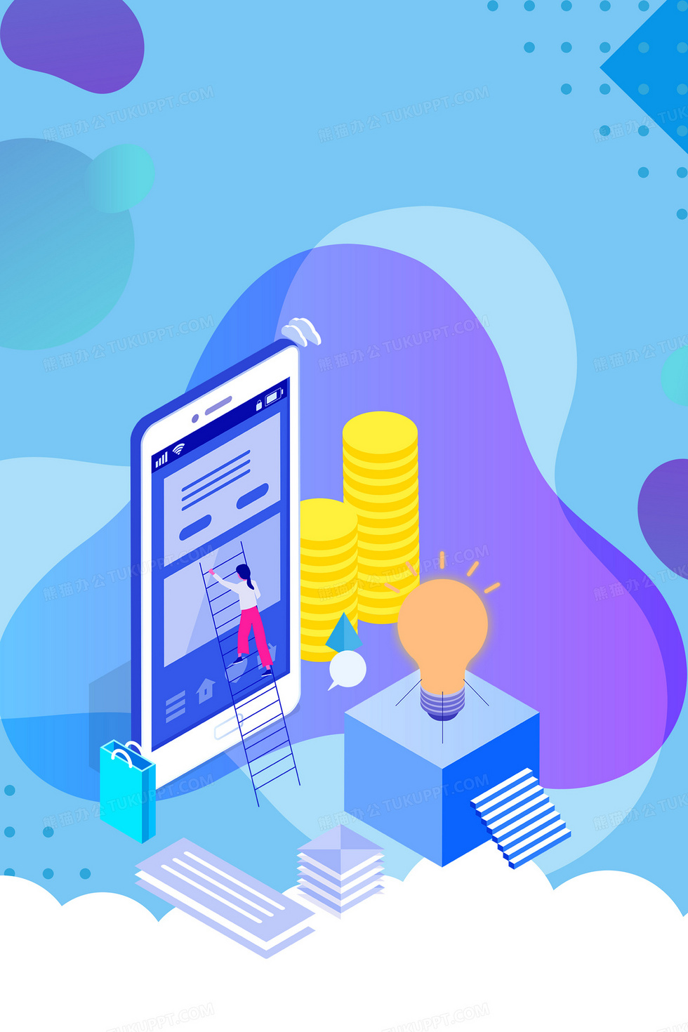 本作品内容为手绘简约清新立体卡通移动手机支付背景, 格式为 psd, 大小6 MB, 图片尺寸为3543 x 5315, 作品中背景图片无需修改, 源文件无水印,可以直接使用, 欢迎使用熊猫办公。 如认为平台内容涉嫌侵权,可通过邮件:tousu@tukuppt.com提出书面通知,我们将及时处理。