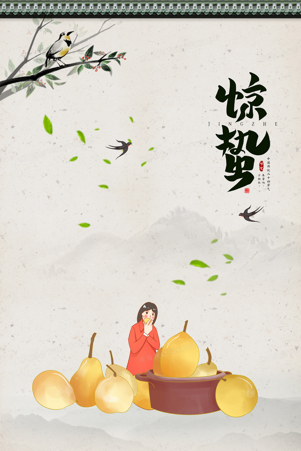 本作品内容为中国风传统二十四节气惊蛰背景, 格式为 psd, 大小92 MB, 图片尺寸为3543 x 5315, 作品中背景图片无需修改, 源文件无水印,可以直接使用, 欢迎使用熊猫办公。 如认为平台内容涉嫌侵权,可通过邮件:tousu@tukuppt.com提出书面通知,我们将及时处理。