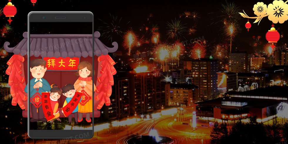 本作品内容为就地过年视频拜年摄影新年烟花合成背景, 格式为 psd, 大小45 MB, 图片尺寸为4724 x 2362, 作品中背景图片无需修改, 源文件无水印,可以直接使用, 欢迎使用熊猫办公。 如认为平台内容涉嫌侵权,可通过邮件:tousu@tukuppt.com提出书面通知,我们将及时处理。