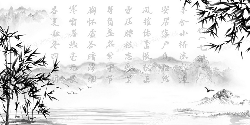 本作品内容为中国风水墨竹子咏竹七律背景, 格式为 psd, 大小24 MB, 图片尺寸为4724 x 2362, 作品中背景图片无需修改, 源文件无水印,可以直接使用, 欢迎使用熊猫办公。 如认为平台内容涉嫌侵权,可通过邮件:tousu@tukuppt.com提出书面通知,我们将及时处理。
