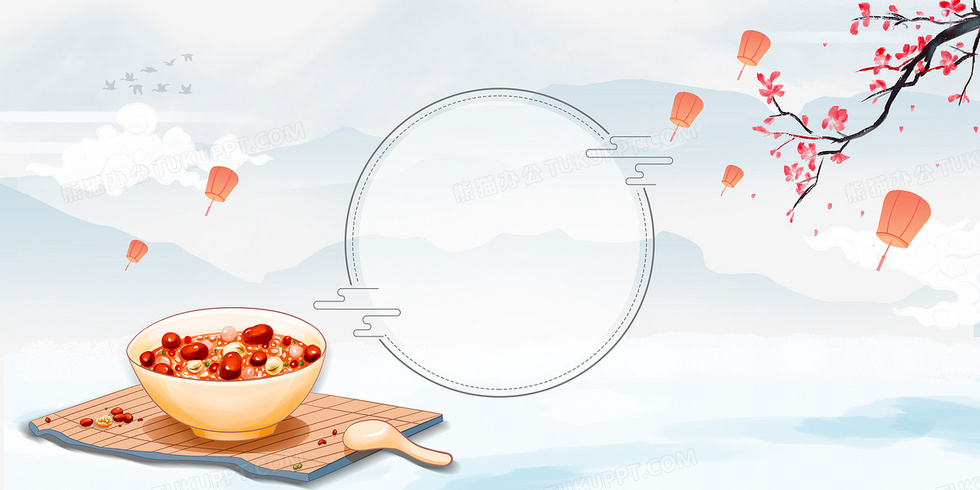 本作品内容为腊八节清新中国风腊八粥梅花背景, 格式为 psd, 大小27 MB, 图片尺寸为4724 x 2362, 作品中背景图片无需修改, 源文件无水印,可以直接使用, 欢迎使用熊猫办公。 如认为平台内容涉嫌侵权,可通过邮件:tousu@tukuppt.com提出书面通知,我们将及时处理。