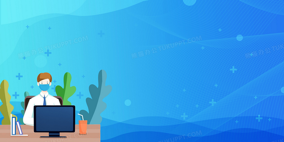 本作品内容为蓝色商务戴口罩办公企业公司商务办公背景, 格式为 psd, 大小11 MB, 图片尺寸为4724 x 2362, 作品中背景图片无需修改, 源文件无水印,可以直接使用, 欢迎使用熊猫办公。 如认为平台内容涉嫌侵权,可通过邮件:tousu@tukuppt.com提出书面通知,我们将及时处理。