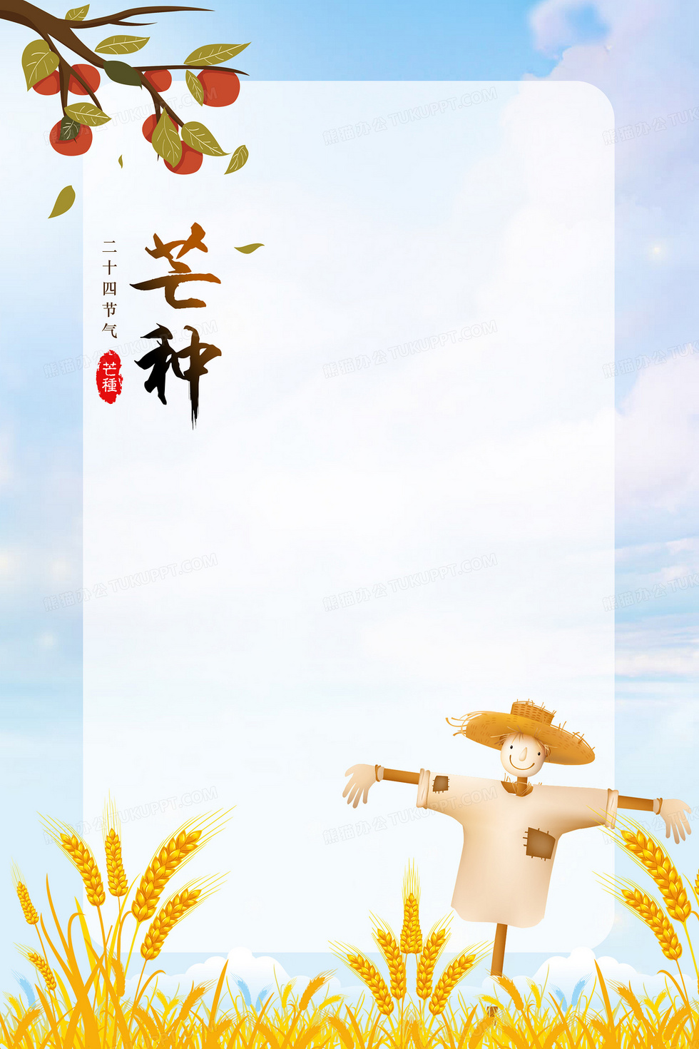 本作品内容为二十四节气芒种丰收中国风背景, 格式为 psd, 大小16 MB, 图片尺寸为3543 x 5315, 作品中背景图片无需修改, 源文件无水印,可以直接使用, 欢迎使用熊猫办公。 如认为平台内容涉嫌侵权,可通过邮件:tousu@tukuppt.com提出书面通知,我们将及时处理。