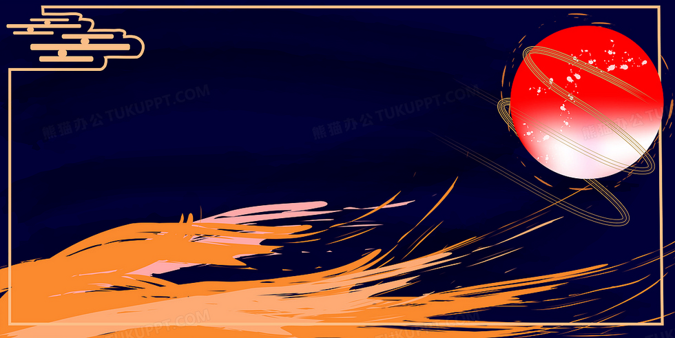 本作品内容为国潮蓝色红日背景, 格式为 ai, 大小5 MB, 图片尺寸为7071 x 3539, 作品中背景图片无需修改, 源文件无水印,可以直接使用, 欢迎使用熊猫办公。 如认为平台内容涉嫌侵权,可通过邮件:tousu@tukuppt.com提出书面通知,我们将及时处理。
