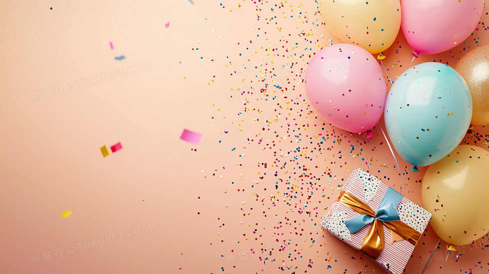 本作品内容为生日派对气球礼盒背景, 格式为 jpg, 大小2 MB, 图片尺寸为2912 x 1632, 作品中背景图片无需修改, 源文件无水印,可以直接使用, 欢迎使用熊猫办公。 如认为平台内容涉嫌侵权,可通过邮件:tousu@tukuppt.com提出书面通知,我们将及时处理。