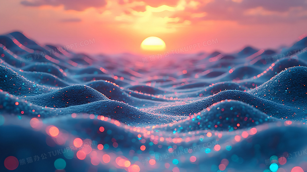 本作品内容为未来之光抽象地形地貌波浪山背景, 格式为 jpg, 大小2 MB, 图片尺寸为2912 x 1638, 作品中背景图片无需修改, 源文件无水印,可以直接使用, 欢迎使用熊猫办公。 如认为平台内容涉嫌侵权,可通过邮件:tousu@tukuppt.com提出书面通知,我们将及时处理。