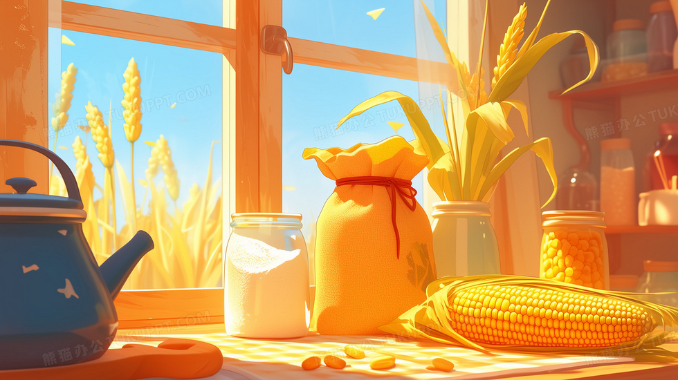 本作品内容为厨房一角的五谷杂粮二维动画风格插画, 格式为 jpg, 大小4 MB, 图片尺寸为2912 x 1632, 源文件无水印, 欢迎使用熊猫办公。 如认为平台内容涉嫌侵权,可通过邮件:tousu@tukuppt.com提出书面通知,我们将及时处理。