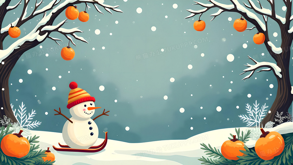 本作品内容为卡通雪人冻柿子背景, 格式为 jpg, 大小6 MB, 图片尺寸为3072 x 1728, 作品中背景图片无需修改, 源文件无水印,可以直接使用, 欢迎使用熊猫办公。 如认为平台内容涉嫌侵权,可通过邮件:tousu@tukuppt.com提出书面通知,我们将及时处理。