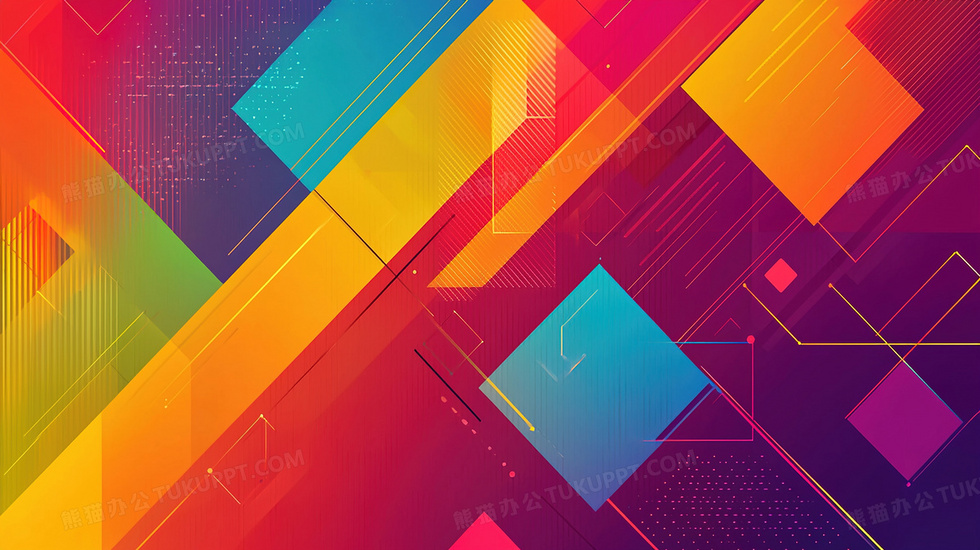 本作品内容为彩色商务几何色块创意背景, 格式为 jpg, 大小3 MB, 图片尺寸为2912 x 1632, 作品中背景图片无需修改, 源文件无水印,可以直接使用, 欢迎使用熊猫办公。 如认为平台内容涉嫌侵权,可通过邮件:tousu@tukuppt.com提出书面通知,我们将及时处理。