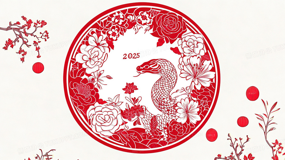 本作品内容为剪纸风红色植物花卉窗花蛇插画, 格式为 jpg, 大小4 MB, 图片尺寸为2912 x 1632, 源文件无水印, 欢迎使用熊猫办公。 如认为平台内容涉嫌侵权,可通过邮件:tousu@tukuppt.com提出书面通知,我们将及时处理。