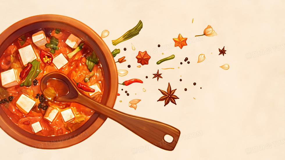 本作品内容为卡通中餐美食麻辣豆腐创意背景, 格式为 jpg, 大小2 MB, 图片尺寸为2912 x 1632, 作品中背景图片无需修改, 源文件无水印,可以直接使用, 欢迎使用熊猫办公。 如认为平台内容涉嫌侵权,可通过邮件:tousu@tukuppt.com提出书面通知,我们将及时处理。