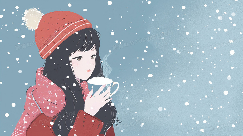 本作品内容为冬天女孩热奶茶茶饮温暖背景, 格式为 jpg, 大小3 MB, 图片尺寸为2912 x 1632, 作品中背景图片无需修改, 源文件无水印,可以直接使用, 欢迎使用熊猫办公。 如认为平台内容涉嫌侵权,可通过邮件:tousu@tukuppt.com提出书面通知,我们将及时处理。