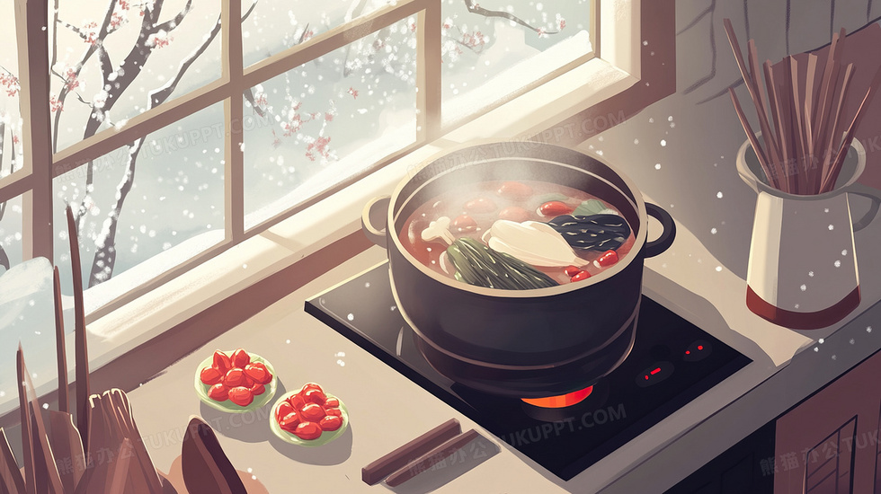 本作品内容为冬天在屋内煮汤插画, 格式为 jpg, 大小2 MB, 图片尺寸为2912 x 1632, 源文件无水印, 欢迎使用熊猫办公。 如认为平台内容涉嫌侵权,可通过邮件:tousu@tukuppt.com提出书面通知,我们将及时处理。