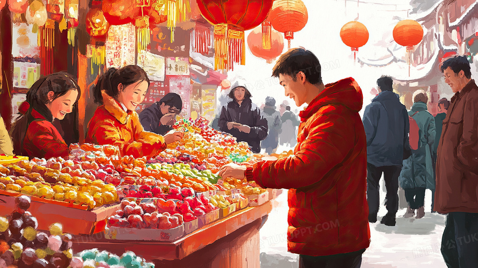 本作品内容为年货节摊位买糖果的男子插画, 格式为 jpg, 大小4 MB, 图片尺寸为2912 x 1632, 源文件无水印, 欢迎使用熊猫办公。 如认为平台内容涉嫌侵权,可通过邮件:tousu@tukuppt.com提出书面通知,我们将及时处理。