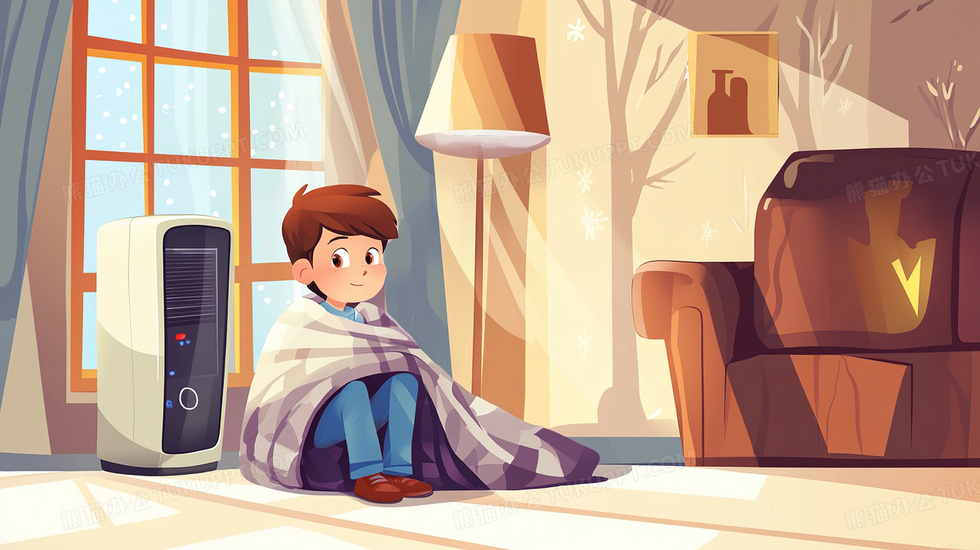 本作品内容为冬季保暖穿着盖着被子保暖的人物插画, 格式为 jpg, 大小2 MB, 图片尺寸为2912 x 1632, 源文件无水印, 欢迎使用熊猫办公。 如认为平台内容涉嫌侵权,可通过邮件:tousu@tukuppt.com提出书面通知,我们将及时处理。