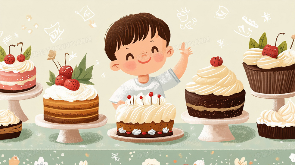 本作品内容为蛋糕小孩美味零食食物美食插画, 格式为 jpg, 大小3 MB, 图片尺寸为2912 x 1632, 源文件无水印, 欢迎使用熊猫办公。 如认为平台内容涉嫌侵权,可通过邮件:tousu@tukuppt.com提出书面通知,我们将及时处理。