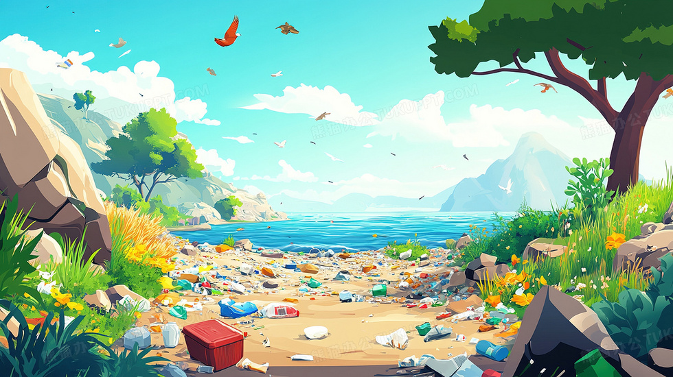本作品内容为环保环境污染满是垃圾的海滩插画, 格式为 jpg, 大小3 MB, 图片尺寸为2912 x 1632, 源文件无水印, 欢迎使用熊猫办公。 如认为平台内容涉嫌侵权,可通过邮件:tousu@tukuppt.com提出书面通知,我们将及时处理。