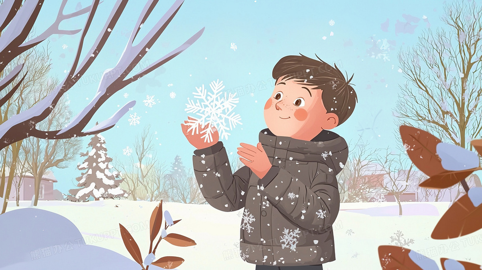 本作品内容为冬天雪地穿着厚重衣服接雪花观雪景的卡通人物插画, 格式为 jpg, 大小3 MB, 图片尺寸为2912 x 1632, 源文件无水印, 欢迎使用熊猫办公。 如认为平台内容涉嫌侵权,可通过邮件:tousu@tukuppt.com提出书面通知,我们将及时处理。