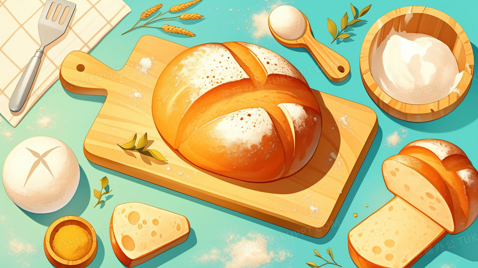 本作品内容为菜板上的金黄色美食法式面包插画, 格式为 jpg, 大小3 MB, 图片尺寸为2912 x 1632, 源文件无水印, 欢迎使用熊猫办公。 如认为平台内容涉嫌侵权,可通过邮件:tousu@tukuppt.com提出书面通知,我们将及时处理。
