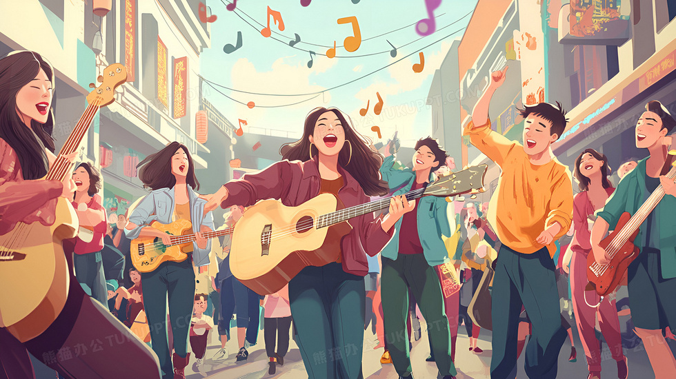 本作品内容为年轻人的露天音乐会插画, 格式为 jpg, 大小2 MB, 图片尺寸为2912 x 1632, 源文件无水印, 欢迎使用熊猫办公。 如认为平台内容涉嫌侵权,可通过邮件:tousu@tukuppt.com提出书面通知,我们将及时处理。