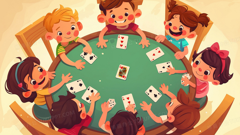 本作品内容为娱乐生活打扑克牌儿童卡通插画, 格式为 jpg, 大小2 MB, 图片尺寸为2912 x 1632, 源文件无水印, 欢迎使用熊猫办公。 如认为平台内容涉嫌侵权,可通过邮件:tousu@tukuppt.com提出书面通知,我们将及时处理。