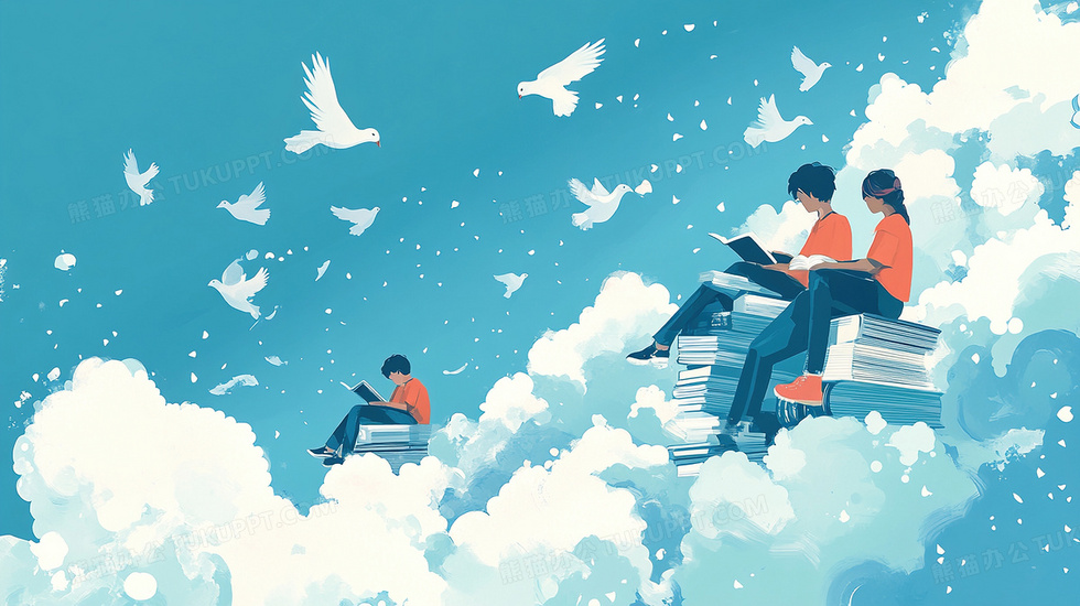 本作品内容为天空学校教育云端学习看书的学生插画, 格式为 jpg, 大小3 MB, 图片尺寸为2912 x 1632, 源文件无水印, 欢迎使用熊猫办公。 如认为平台内容涉嫌侵权,可通过邮件:tousu@tukuppt.com提出书面通知,我们将及时处理。