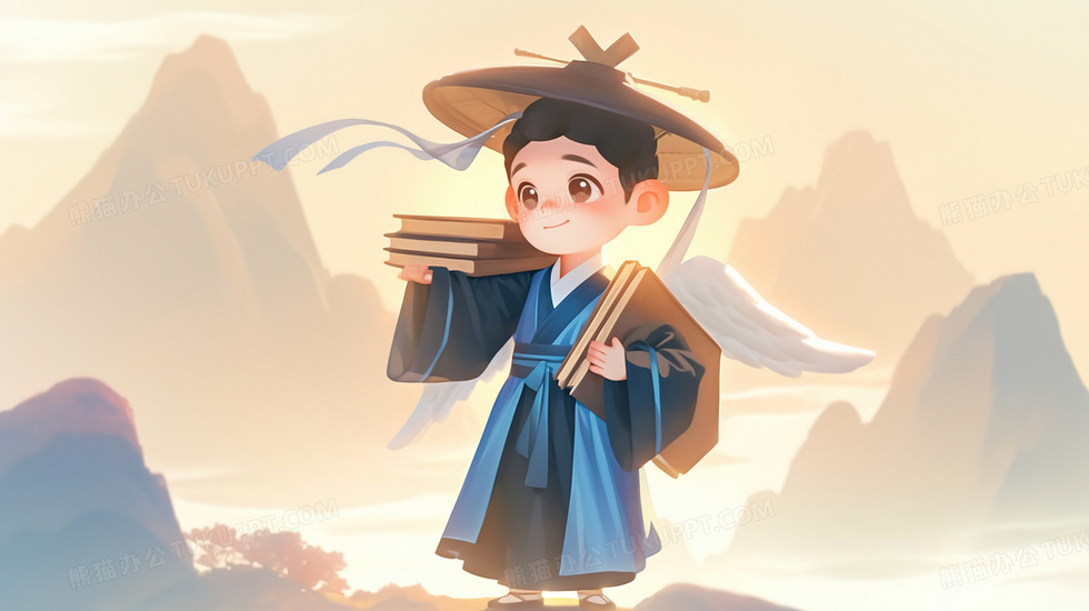 本作品内容为背着箱笼上学的古代书童插画, 格式为 jpg, 大小2 MB, 图片尺寸为2912 x 1632, 源文件无水印, 欢迎使用熊猫办公。 如认为平台内容涉嫌侵权,可通过邮件:tousu@tukuppt.com提出书面通知,我们将及时处理。