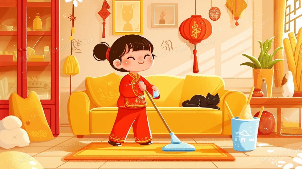 本作品内容为打扫卫生的小女孩和宠物猫插画, 格式为 jpg, 大小3 MB, 图片尺寸为2912 x 1632, 源文件无水印, 欢迎使用熊猫办公。 如认为平台内容涉嫌侵权,可通过邮件:tousu@tukuppt.com提出书面通知,我们将及时处理。