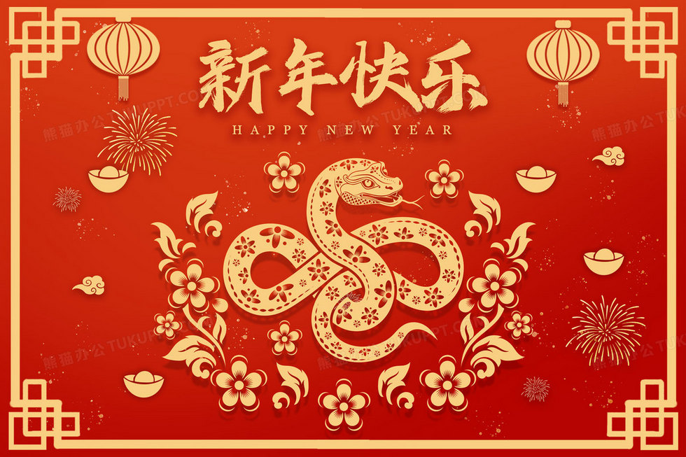 本作品内容为2025红金剪纸风蛇年新年快乐插画, 格式为 psd, 大小89 MB, 请使用软件PhotoShop(CS6)打开, 源文件无水印, 欢迎使用熊猫办公。 如认为平台内容涉嫌侵权,可通过邮件:tousu@tukuppt.com提出书面通知,我们将及时处理。