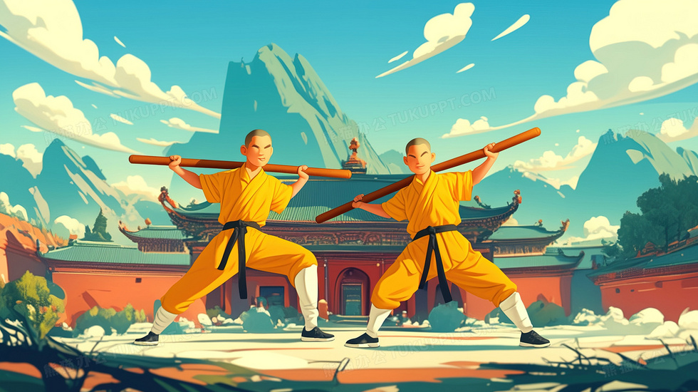 本作品内容为练习少林功夫武术和尚插画, 格式为 jpg, 大小3 MB, 图片尺寸为2912 x 1632, 源文件无水印, 欢迎使用熊猫办公。 如认为平台内容涉嫌侵权,可通过邮件:tousu@tukuppt.com提出书面通知,我们将及时处理。