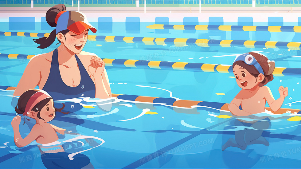 本作品内容为夏天孩子们认真的和教练学习游泳创意插画, 格式为 jpg, 大小5 MB, 图片尺寸为2912 x 1632, 源文件无水印, 欢迎使用熊猫办公。 如认为平台内容涉嫌侵权,可通过邮件:tousu@tukuppt.com提出书面通知,我们将及时处理。