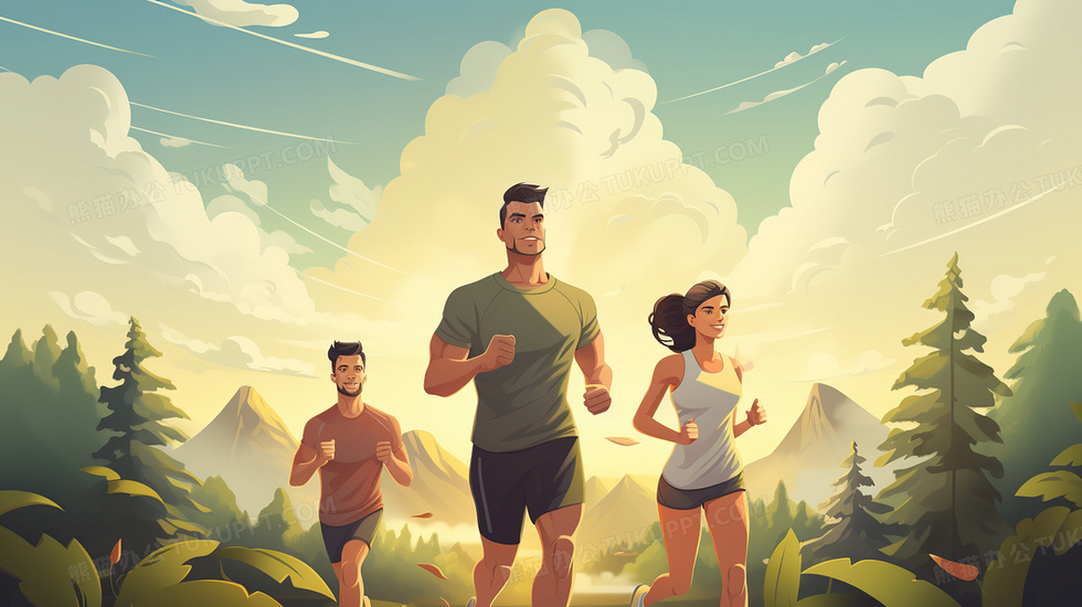 本作品内容为3个人在晨跑运动健身创意插画, 格式为 jpg, 大小5 MB, 图片尺寸为2912 x 1632, 源文件无水印, 欢迎使用熊猫办公。 如认为平台内容涉嫌侵权,可通过邮件:tousu@tukuppt.com提出书面通知,我们将及时处理。