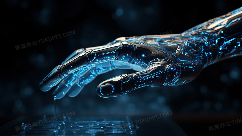 本作品内容为蓝色商务科技风格虚拟机械手臂科幻插画, 格式为 jpg, 大小2 MB, 图片尺寸为2912 x 1632, 源文件无水印, 欢迎使用熊猫办公。 如认为平台内容涉嫌侵权,可通过邮件:tousu@tukuppt.com提出书面通知,我们将及时处理。