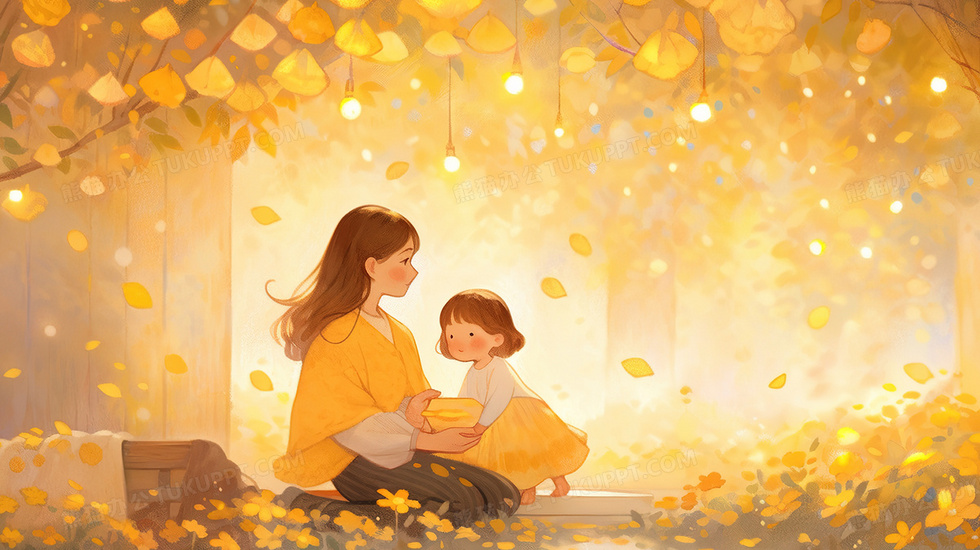 本作品内容为金黄色树林里的母女插画, 格式为 jpg, 大小3 MB, 图片尺寸为2912 x 1632, 源文件无水印, 欢迎使用熊猫办公。 如认为平台内容涉嫌侵权,可通过邮件:tousu@tukuppt.com提出书面通知,我们将及时处理。