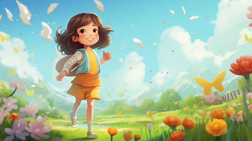 本作品内容为春天在草地花丛中快乐玩耍的女孩插画, 格式为 jpg, 大小5 MB, 图片尺寸为2912 x 1632, 源文件无水印, 欢迎使用熊猫办公。 如认为平台内容涉嫌侵权,可通过邮件:tousu@tukuppt.com提出书面通知,我们将及时处理。