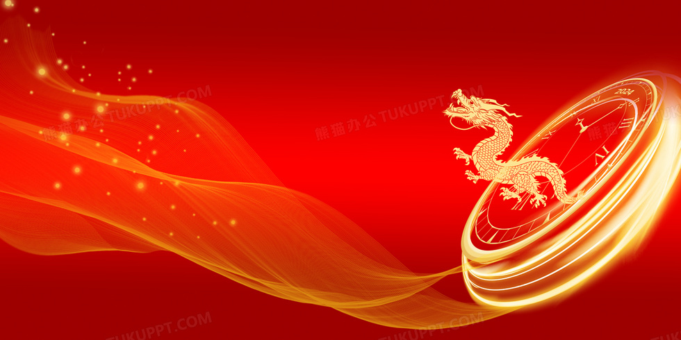 本作品内容为龙年时钟年会背景, 格式为 psd, 大小41 MB, 图片尺寸为4724 x 2362, 作品中背景图片无需修改, 源文件无水印,可以直接使用, 欢迎使用熊猫办公。 如认为平台内容涉嫌侵权,可通过邮件:tousu@tukuppt.com提出书面通知,我们将及时处理。