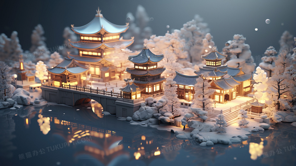 本作品内容为冬季林中中式古阁楼大雪雪景插画, 格式为 jpg, 大小6 MB, 图片尺寸为2912 x 1632, 源文件无水印, 欢迎使用熊猫办公。 如认为平台内容涉嫌侵权,可通过邮件:tousu@tukuppt.com提出书面通知,我们将及时处理。