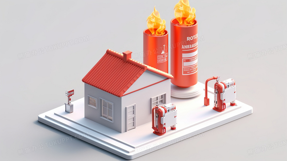 本作品内容为红房子前面放着两个灭火器微缩C4D模型插画, 格式为 jpg, 大小4 MB, 图片尺寸为2912 x 1632, 源文件无水印, 欢迎使用熊猫办公。 如认为平台内容涉嫌侵权,可通过邮件:tousu@tukuppt.com提出书面通知,我们将及时处理。