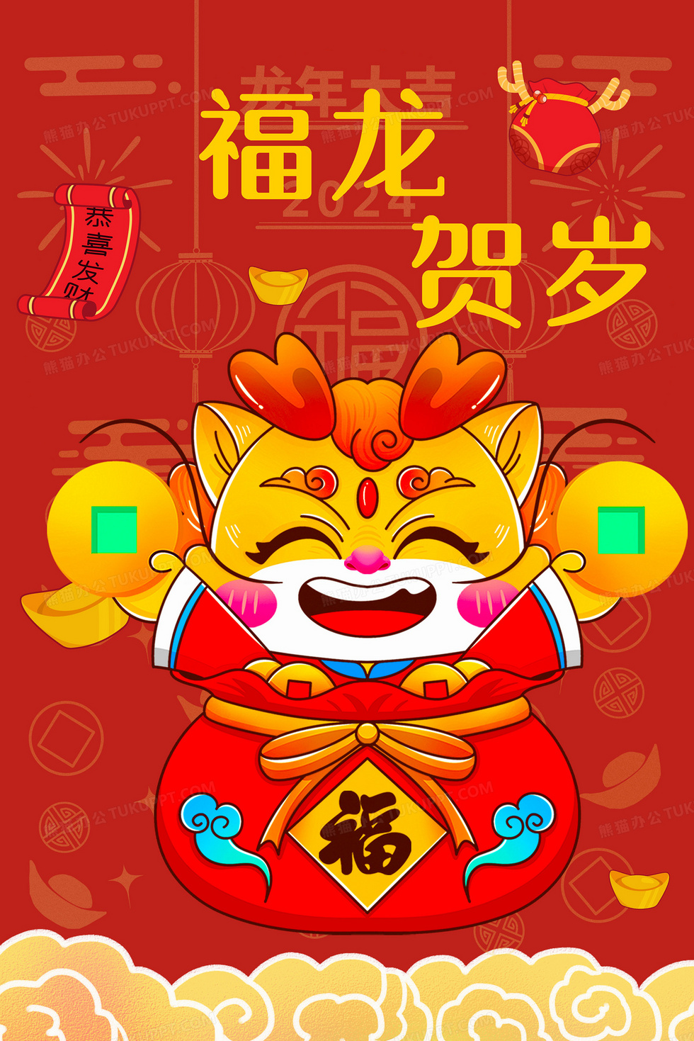 本作品内容为福龙贺岁新年喜庆吉祥插画, 格式为 psd, 大小111 MB, 请使用软件PhotoShop(CS6)打开, 源文件无水印, 欢迎使用熊猫办公。 如认为平台内容涉嫌侵权,可通过邮件:tousu@tukuppt.com提出书面通知,我们将及时处理。
