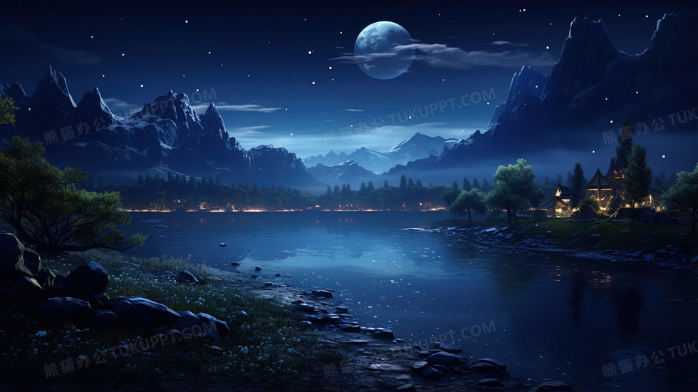 本作品内容为自然风景唯美夜色插画, 格式为 jpg, 大小5 MB, 图片尺寸为2912 x 1632, 源文件无水印, 欢迎使用熊猫办公。 如认为平台内容涉嫌侵权,可通过邮件:tousu@tukuppt.com提出书面通知,我们将及时处理。