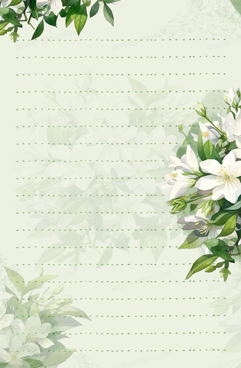 本作品内容为小清新茉莉花信封背景, 格式为 psd, 大小81 MB, 图片尺寸为3543 x 5413, 作品中背景图片无需修改, 源文件无水印,可以直接使用, 欢迎使用熊猫办公。 如认为平台内容涉嫌侵权,可通过邮件:tousu@tukuppt.com提出书面通知,我们将及时处理。