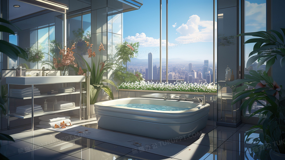 本作品内容为干净整洁的浴室卫生间场景插画, 格式为 jpg, 大小6 MB, 图片尺寸为2912 x 1632, 源文件无水印, 欢迎使用熊猫办公。 如认为平台内容涉嫌侵权,可通过邮件:tousu@tukuppt.com提出书面通知,我们将及时处理。