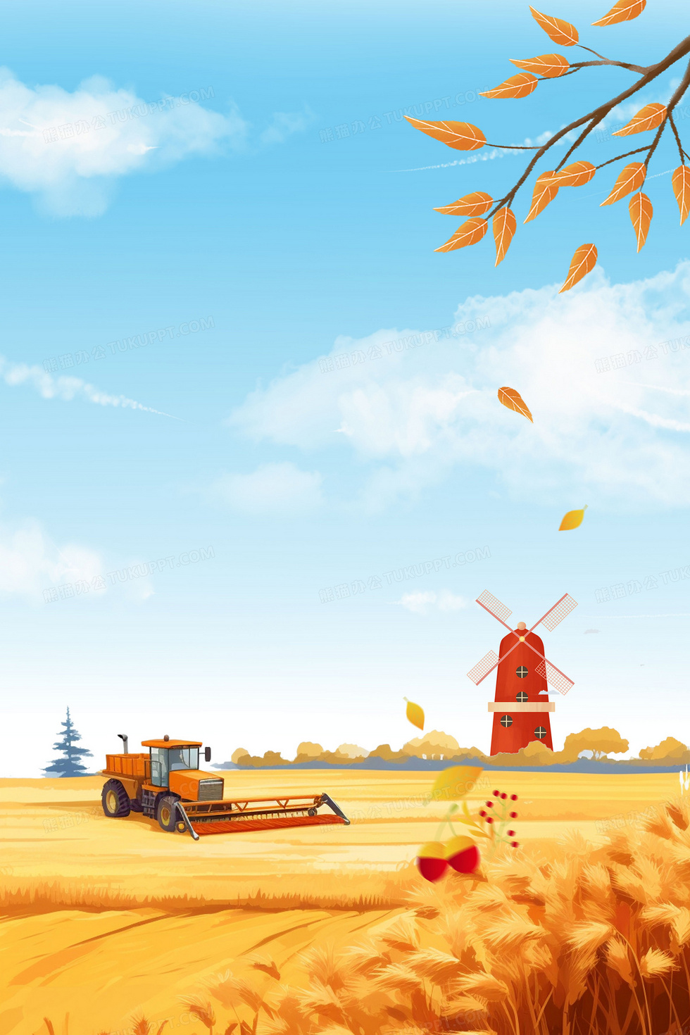 本作品内容为秋天黄色丰收麦田拖拉机合成背景, 格式为 psd, 大小50 MB, 图片尺寸为3543 x 5314, 作品中背景图片无需修改, 源文件无水印,可以直接使用, 欢迎使用熊猫办公。 如认为平台内容涉嫌侵权,可通过邮件:tousu@tukuppt.com提出书面通知,我们将及时处理。